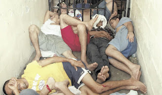 Es ya la medianoche y en cada celda los internos se las ingenian para dormir lo mejor posible. Algunos han forrado botellas plásticas con un pedazo de trapo para que les sirvan como almohada. Es difícil imaginar el cuadro hasta que se ve.