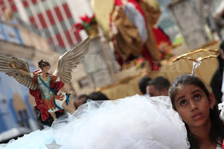 El repique de campanas, que al unísono salían de lo alto de la Catedral Metropolitana y una alegre alborada con quema de pólvora, irrumpieron ayer a las 6:00 de la mañana el silencio del Casco Histórico de la capital, anunciando el cumpleaños número 433 de la antañona Tegucigalpa, que entre coloniales iglesias, angostas calles, museos e históricos edificios, se abre paso al modernismo de los últimos tiempos. La celebración en honor a San Miguel Arcángel, lo cual se une a la exposición de 30 ángeles y arcángeles que son exhibidos gratuitamente en dos salas de la Catedral Metropolitana. Los capitalinos celebran con júbilo la feria de la capital, fundada en 1578 como un pueblo minero gobernado por el alcalde español Juan de la Cueva, pero que hoy en día hace contraste con las nuevas generaciones que ven como Tegucigalpa se introduce en el modernismo que le dan la construcción de grandes centros comerciales, emblemáticos edificios, bulevares y pasos a desnivel. La combinación de una serie de actividades de la Iglesia Católica en honor al santo patrón, San Miguel Arcángel y de la Alcaldía Municipal del Distrito Central, han hecho de este 433 aniversario una verdadera fiesta cargada de arte, cultura, actos religiosos, deporte, concursos y música, que disfrutan los capitalinos y sus visitantes.http://actualidadcatracha.blogspot.com/
