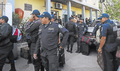 No precisó qué tipo de faltas cometieron Barrida De acuerdo con el listado oficial, nueve oficiales y 29 policías fueron separados de la institución. Entre los oficiales sancionados se encuentran un subcomisionado, subcomisarios, comisarios, inspectores y subinspectores. El subcomisionado Mario Chamorro Gotay, exjefe de la estación Metropolitana número 1, es el oficial de más alto rango en la lista Aparecen en el listado de separados los comisarios Einer Moncada, exjefe del distrito policial de La Granja; el comisario Leonel Osmín Merlo, exjefe de la delegación de la colonia Kennedy, y el subcomisario Dorian Sobalvarro Buezo, exjefe del distrito policial de la colonia San Francisco. Figuran también el comisario Nelson Martín Smith; el inspector Rosel Nájera y los subinspectores Sachary Mauriel Pineda, Essaú González y Javier Armando Pineda. Los otros separados son un policía clase I y 28 elementos de la escala básica. Iván Mejía dijo que se revisan los expedientes de policías que han sido acusados ante los tribunales de justicia para determinar si también serán suspendidos. Más separaciones Se supo ayer que se prepara un segundo remezón que podría incluir uno o varios generales. Esta lista se elabora como secreto de Estado y la decisión final estaría en manos del secretario de Seguridad, Pompeyo Bonilla , después de consultas con el presidente Porfirio Lobo. Se supo que entre los que dejaría la Policía se encuentra un comisionado que fue hombre de mucha confianza del exministro de Seguridad, Óscar Álvarez. La decisión de separarlos no se ha tomado en vista de que se trata, en algunos casos, de elementos de mucha antigüedad, según una fuente. http://actualidadcatracha.blogspot.com/