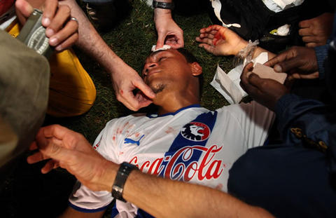 Tegucigalpa, Honduras:- El clásico capitalino entre Olimpia y Motagua finalizó con un saldo lamentable cuando Carlos Will Mejía fue atacado salvajemente por un grupo de inadaptados al dirigirse a los camerinos. Una piedra de gran tamaño pegó en la frente del jugador, que cayó con una profunda herida sobre la ceja derecha y tuvo que ser asistido por miembros de la Cruz Roja. Estos le dieron los primeros auxilios para luego trasladarlo a un centro hospitalario. “Fue una roca de considerable tamaño y la herida amerita de dos a tres puntadas”, dijo uno de los paramédicos al salir a buscar la ambulancia que trasladó al futbolista a una clínica privada. “Es un problema aquí. Los jugadores lo arriesgan todo por dar espectáculo y no es justo que se atente contra ellos”, se quejó el gerente deportivo del León, Osman Madrid. “Qué importa lo que yo diga. Ya se sabe que no se hará nada”, manifestó, molesto por lo sucedido. Madrid amplió su crítica a las autoridades de seguridad. “Ya deben dejar de reunirse y comenzar a tomar decisiones. No es posible que un jugador al que debe cuidarse como Carlos Wil salga hoy golpeado. Eso no es correcto. Las autoridades deben ver qué hace. El fútbol es el único espectáculo que tiene”. Este lamentable incidente empañó el clásico blanco-azul, que finalizó con justa igualada 1-1. El presidente del Olimpia, Rafael Ferrari, reaccionó indignado por la agresión de la que fue objeto el jugador. “Eso fue desafortunado. Creo que la Conapid debe levantar la malla donde está la barra de Motagua porque precisamente están donde los jugadores ingresan en los camerinos”, dijo el directivo. Ferrari agregó que “en vista de lo que ocurrió ahora, con esa piedra y otros objetos que lanzan pueden matar a una persona, sea jugador o árbitros”. Aseguró que no fue falla en la seguridad, pero que deben tomarse medidas para evitar estos incidentes. El comisario Cristóbal Romero manifestó: “Estamos sumamente preocupados por este hecho y lamentamos que en el fútbol se den este tipo de problemas. Les pido a las autoridades de fútbol que rigen en nuestro país que busquen una solución. Sabemos que esto es un problema social, pero tomando las medidas necesarias no creo que se repita”. Y añadió: “Es vergonzoso con esta barra (Revo). Estaban quitando las láminas. ¿Se pueden imaginar que una de esas láminas le pegue en cualquier parte del cuerpo? La cercena. Por lo tanto creo que vamos a tomar cartas en el asunto. Mucha gente no sabe que entre los jugadores se llevan muy bien”. http://www.laprensa.hn